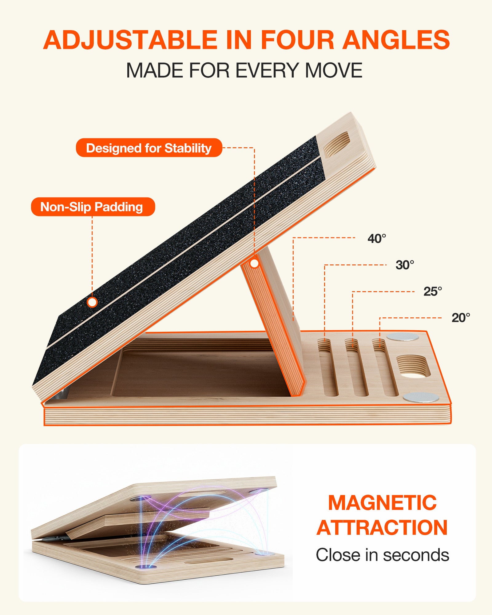 ππ πππ‘ππ§ππ ππ’ππππ‘π πππ¦πππ‘ & πππ¦π¬ π£π’π₯π§ππππππ§π¬ β This portable wooden slant board measures 11.8 Γ 15.7 Γ 1.2 inches and weighs only 5 lbs for easy storage and carrying. Designed as a convenient calf stretch board and versatile exercise equipment, it includes adhesive magnetic pads that need to be attached near the handle to keep the board securely closed when folded. Perfect for stretching, workout, and mobility training at home, office, gym, or travel