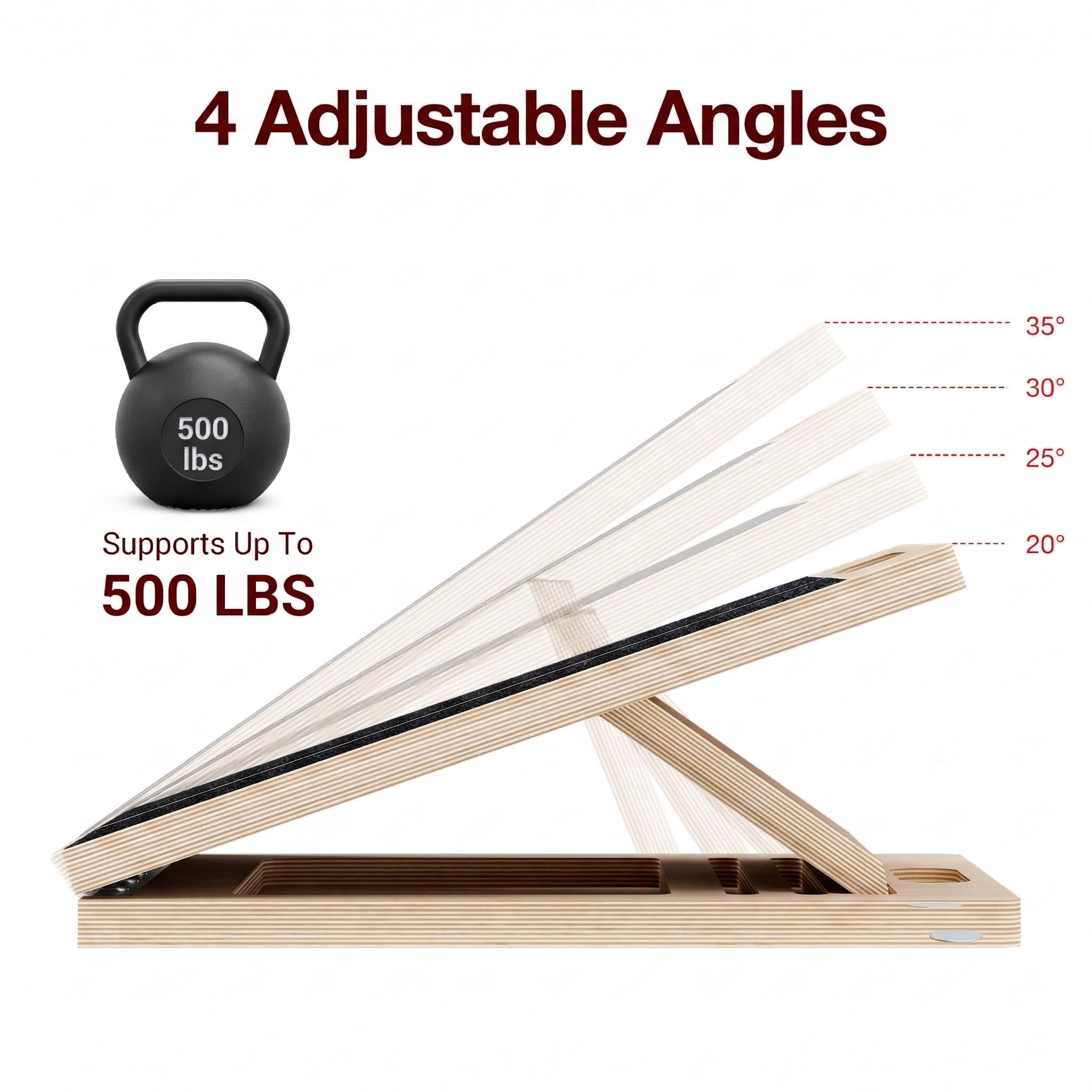 4 Adjustable Angles: Easily adjust between 20°, 25°, 30°, and 35° to match your flexibility level.